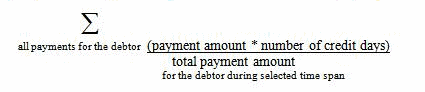 | all payments for the debtor (payment amount * number of credit days) / total payment amount – for the debtor during selected time span |