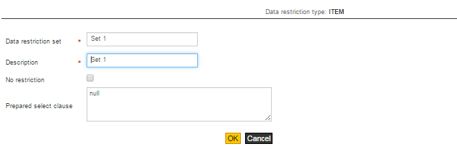 - Select the applicable data restriction set from the drop-down list. Here, select the set you created for the Item code.