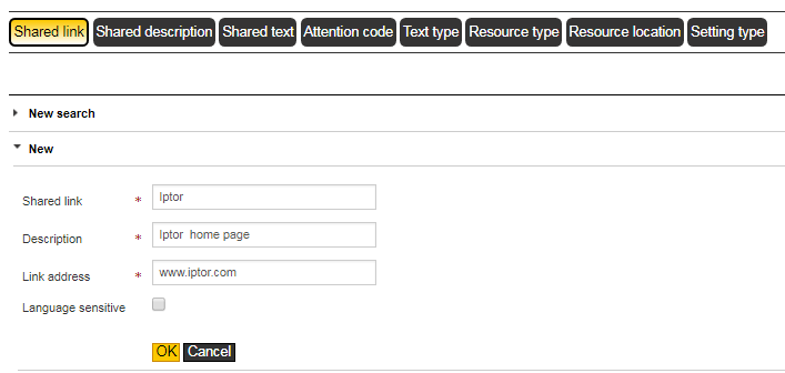 - You access the Shared link page. Click New.